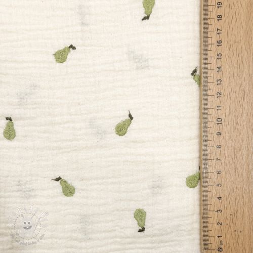 Dvojitá gázovina/mušelín EMBROIDERY Fruit green SIMPLY NATURAL