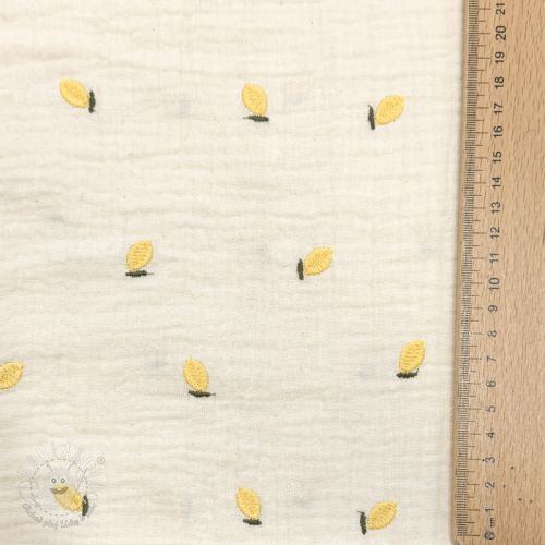 Dvojitá gázovina/mušelín EMBROIDERY Fruit natural yellow