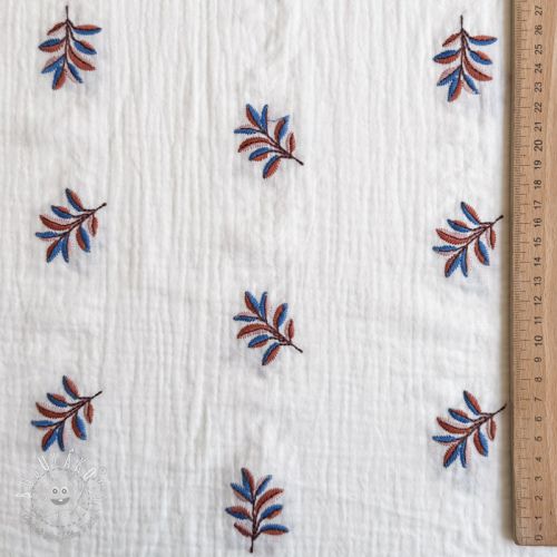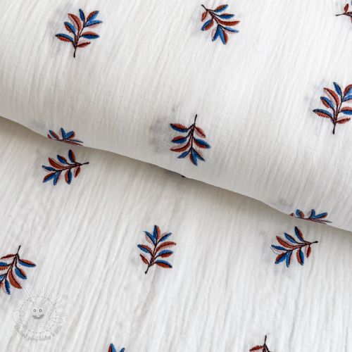 Dvojitá gázovina/mušelín EMBROIDERY Leaves white