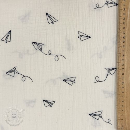 Dvojitá gázovina/mušelín EMBROIDERY Paper plane natural