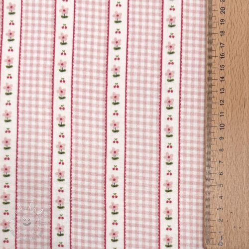 Dvojitá gázovina/mušelín Flowers check pink digital print