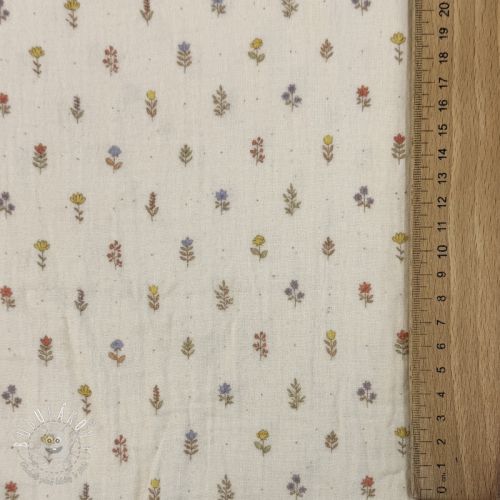 Dvojitá gázovina/mušelín Flowers Mia digital print ORGANIC