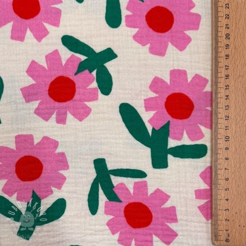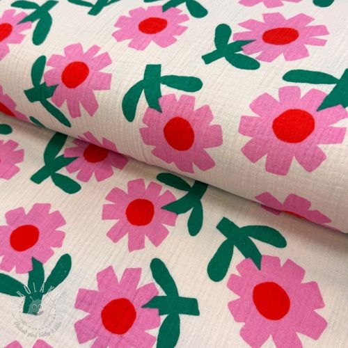 Dvojitá gázovina/mušelín Flowers natural/pink by JENNIFER BOURON ORGANIC