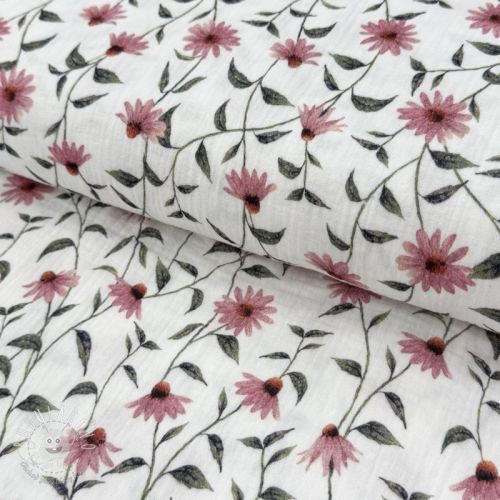 Dvojitá gázovina/mušelín Flowers Simone digital print ORGANIC