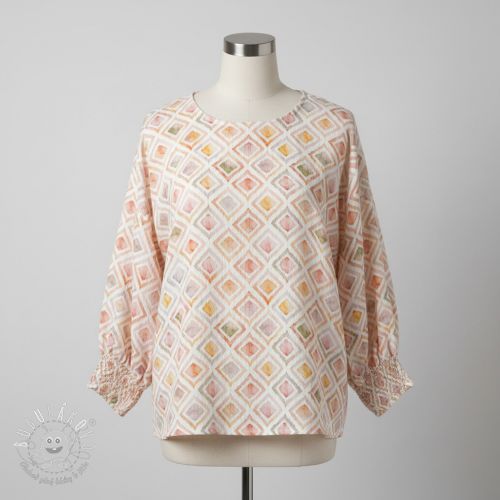 Dvojitá gázovina/mušelín Geo watercolour mauve digital print