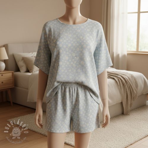 Dvojitá gázovina/mušelín JACQUARD Dots light blue