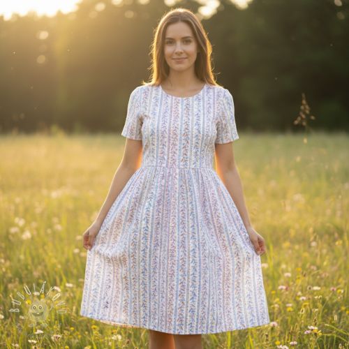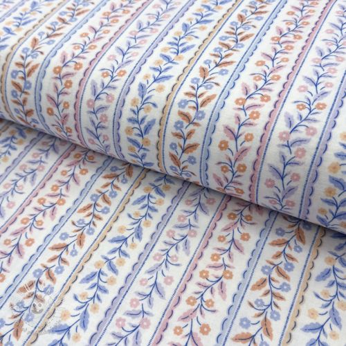 Dvojitá gázovina/mušelín Leaves in stripes digital print ORGANIC