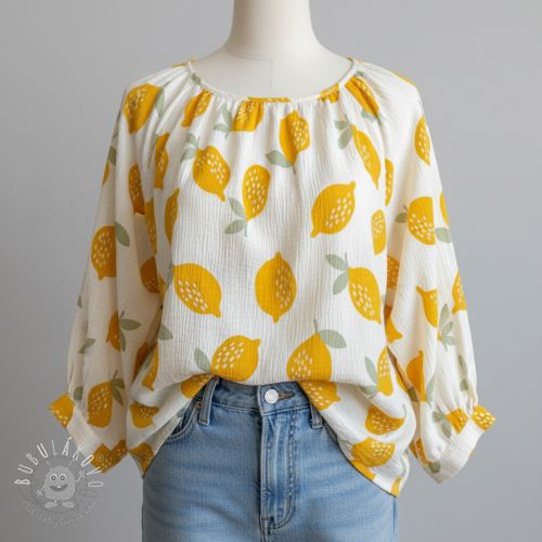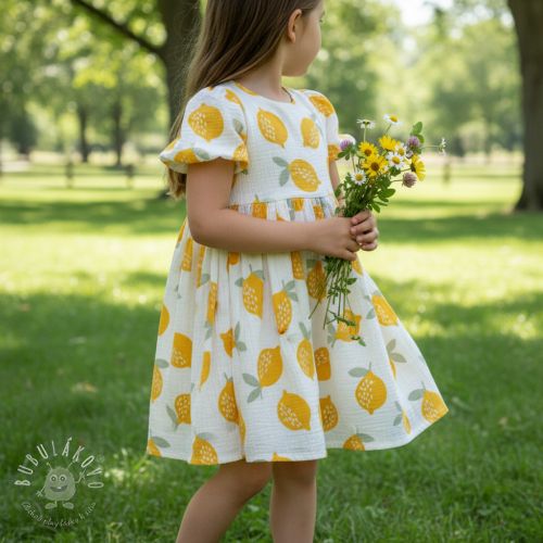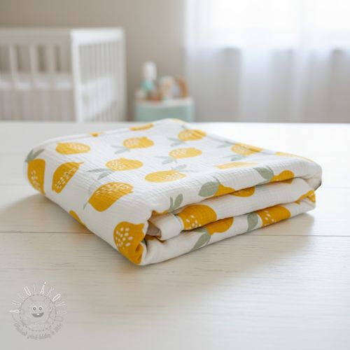 Dvojitá gázovina/mušelín Lemons white