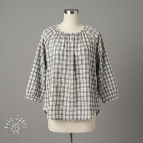 Dvojitá gázovina/mušelín LINEN YARN DYED Checks grey natural