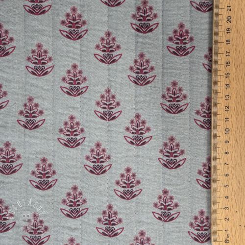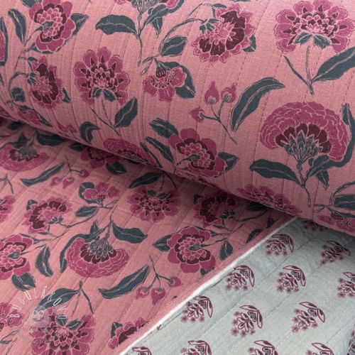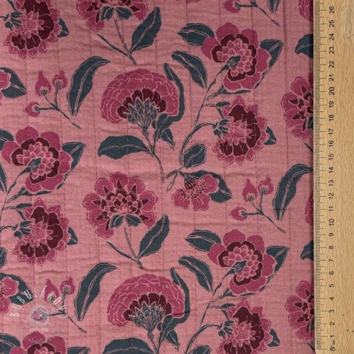 Dvojitá gázovina/mušelín STEPPED Flowers mauve