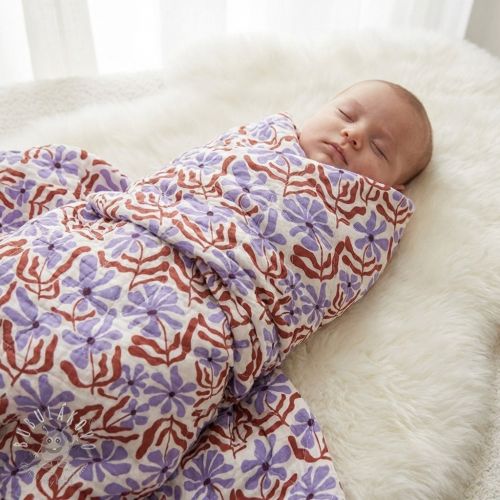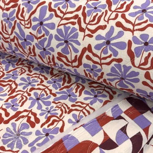 Dvojitá gázovina/mušelín STEPPED Flowers natural