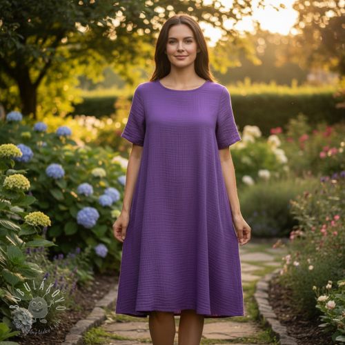 Dvojitá gázovina/mušelín dark lilac ORGANIC