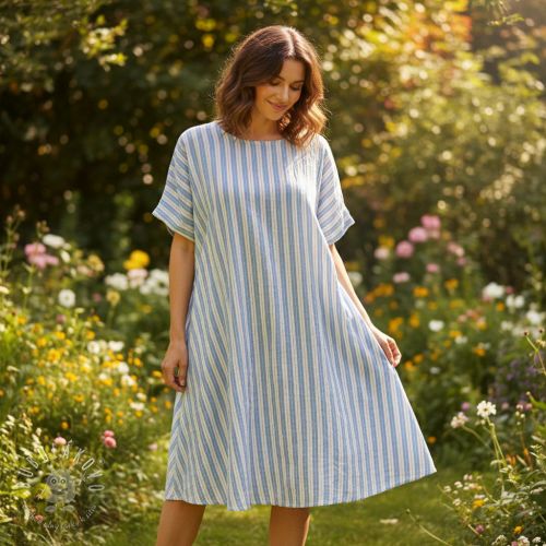 Dvojitá gázovina/mušelín YARN DYED Line blue