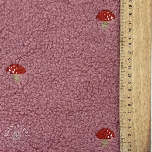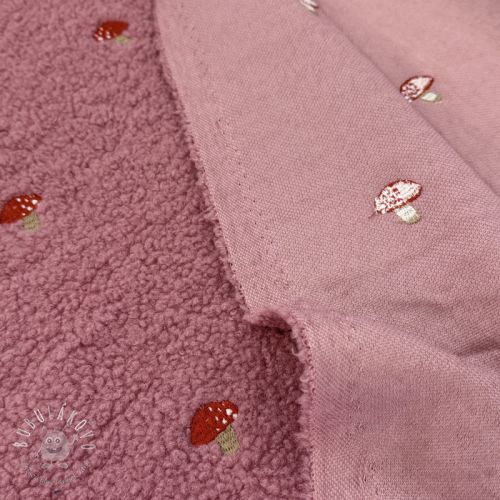 Kabátovina TEDDY EMBROIDERY Little mushrooms old pink