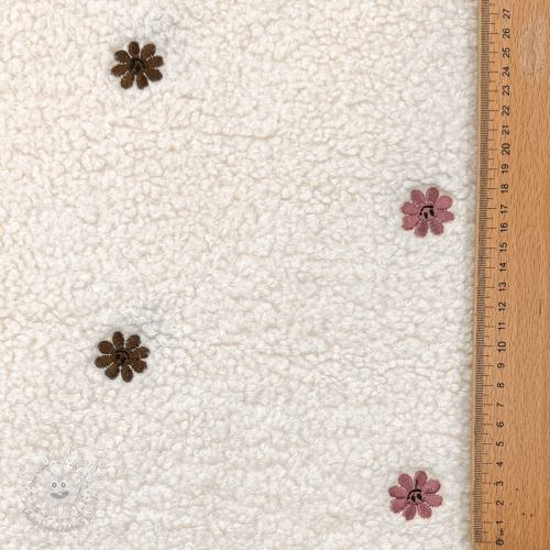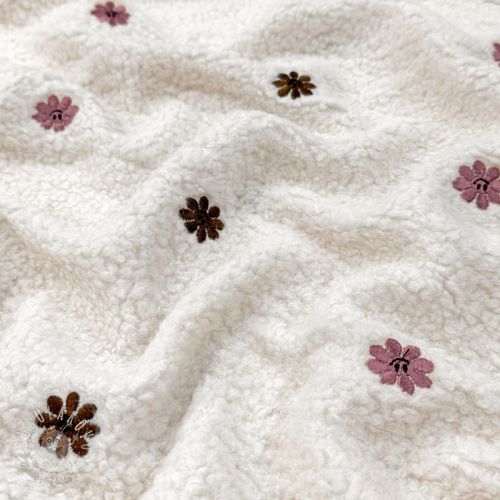 Kabátovina TEDDY EMBROIDERY Smiley flowers old pink