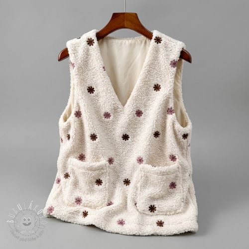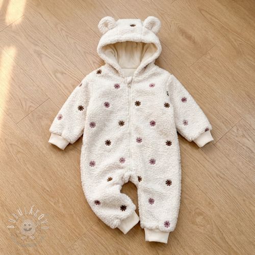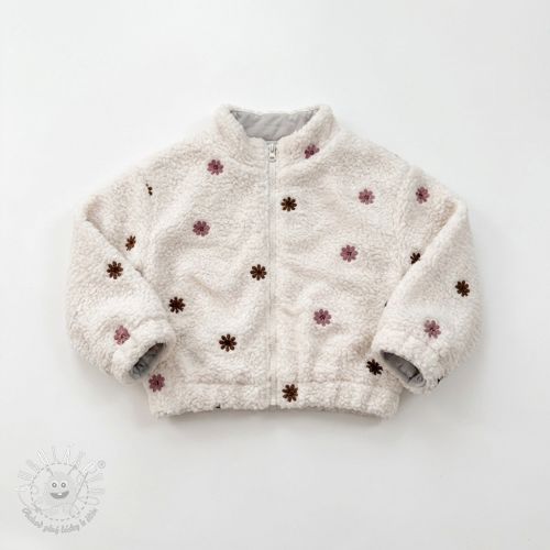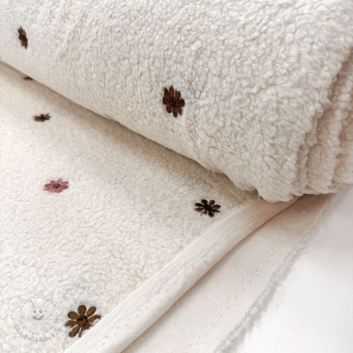Kabátovina TEDDY EMBROIDERY Smiley flowers choco