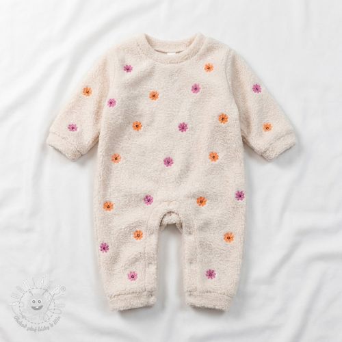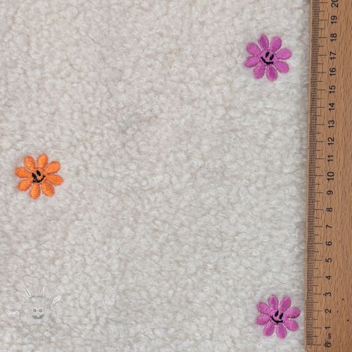 Kabátovina TEDDY EMBROIDERY Smiley flowers orange