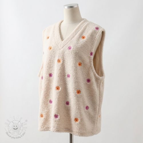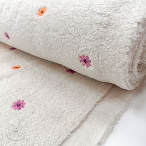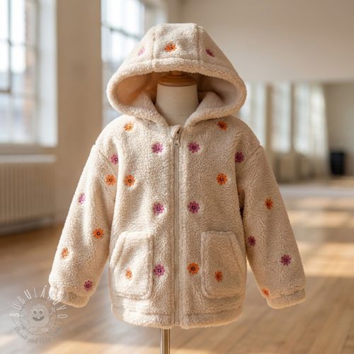 Kabátovina TEDDY EMBROIDERY Smiley flowers choco