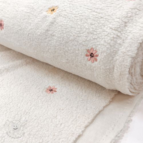 Kabátovina TEDDY EMBROIDERY Smiley flowers old pink