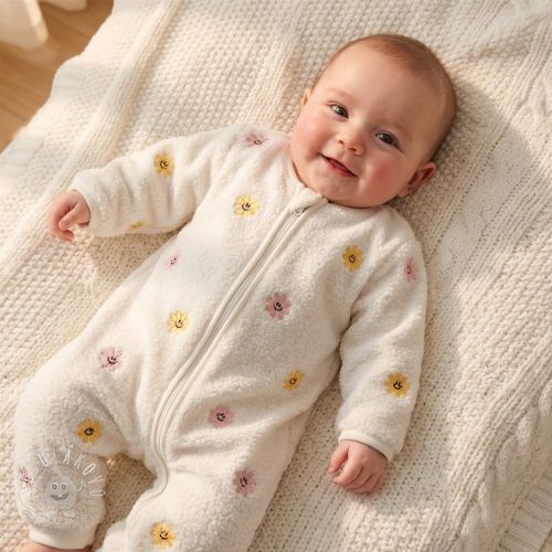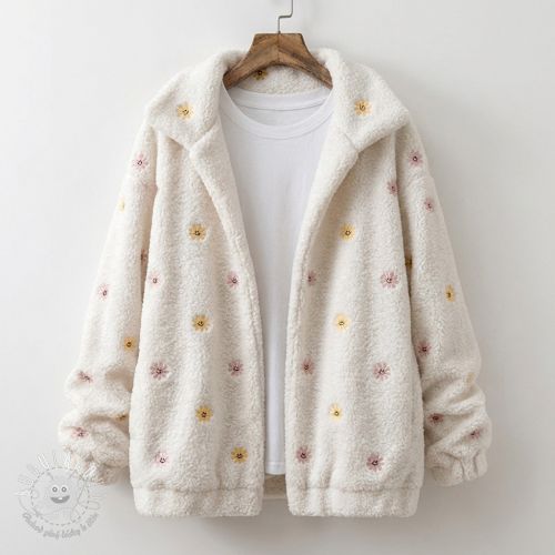 Kabátovina TEDDY EMBROIDERY Smiley flowers yellow