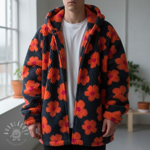 Kabátovina TEDDY JACQUARD Flowers navy