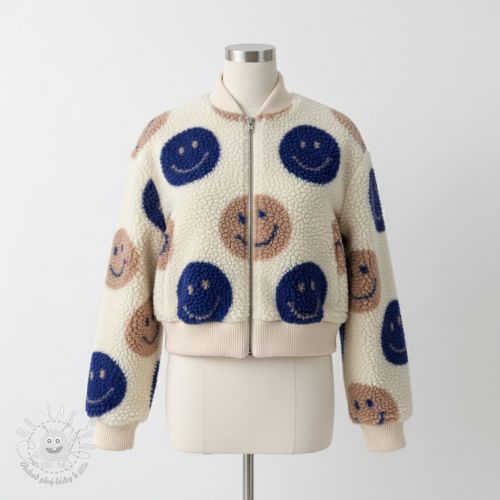 Kabátovina TEDDY JACQUARD Happy faces jeans