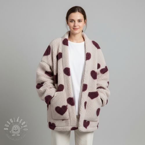 Kabátovina TEDDY JACQUARD Hearts rouge