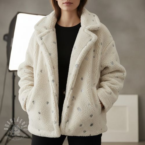 Kabátovina TEDDY Tossed hearts silver