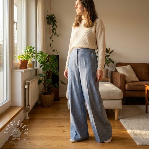 Ľan s bavlnou Fishbone cobalt
