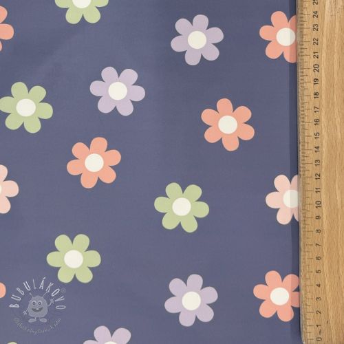 Látka na pršiplášť Flowers jeans