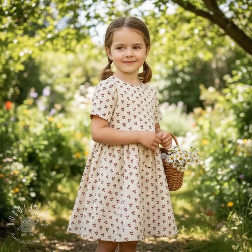 Menčester STRETCH Little strawberries light sand