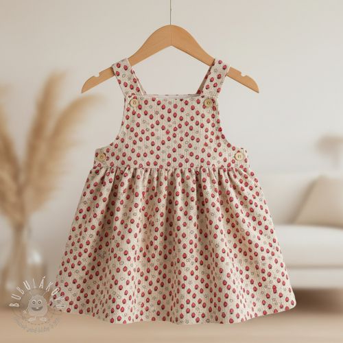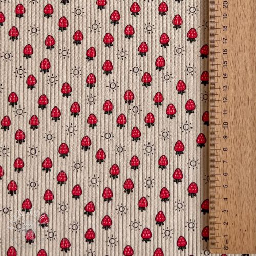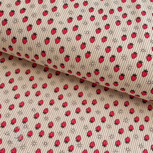 Menčester STRETCH Little strawberries light sand