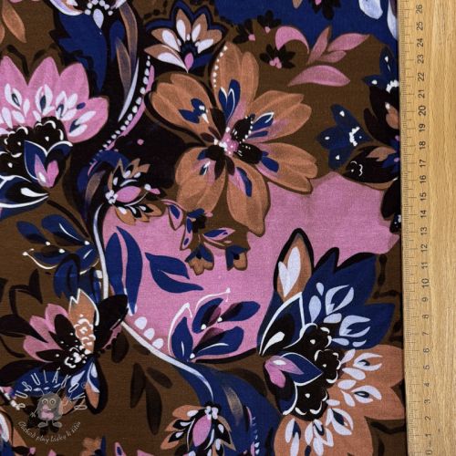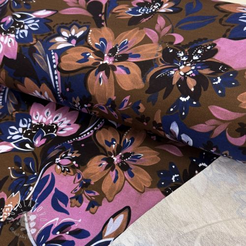 Teplákovina Flowers Mici brown digital print