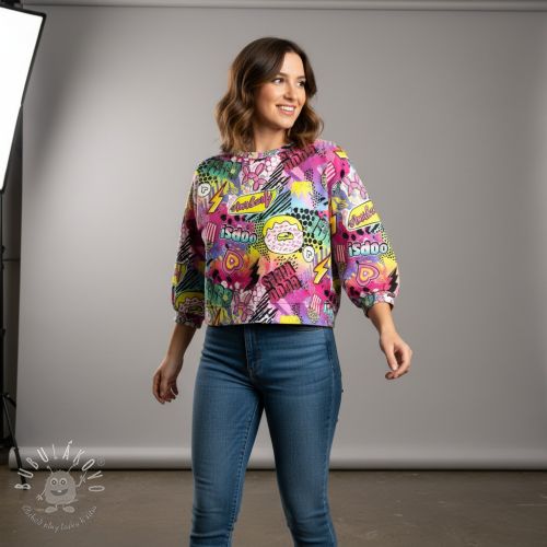 Teplákovina Manga fuchsia digital print