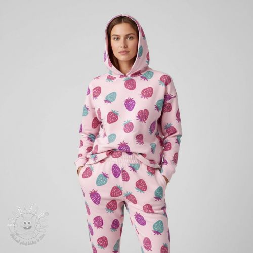 Teplákovina počesaná JOGGING Strawberries pink