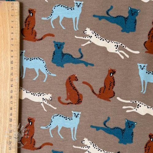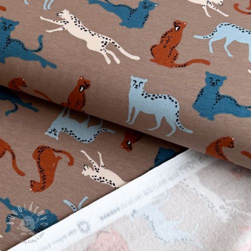 Teplákovina počesaná SOFT Leopard taupe ORGANIC