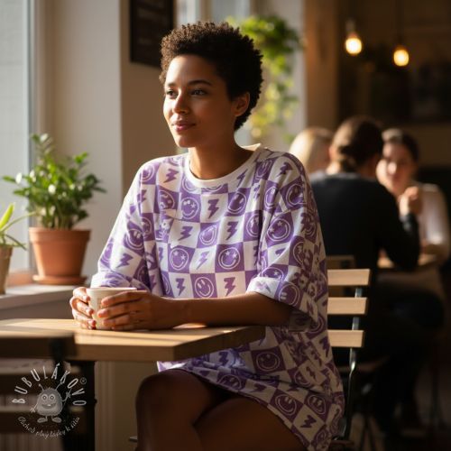 Úplet Happy faces lavender digital print