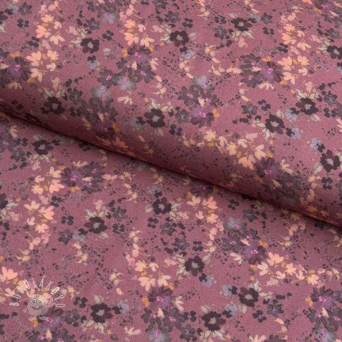 Viskóza ROSELLA STRETCH Tossed flowers rosewood digital print