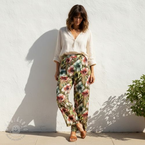 Viskóza s ľanom Azalea design A digital print
