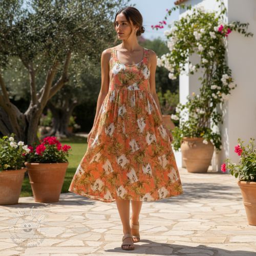Viskóza s ľanom Crane bird design B digital print