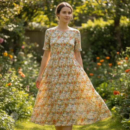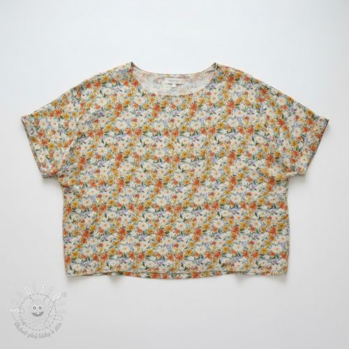 Viskóza s ľanom CREPE Flowers yellow digital print