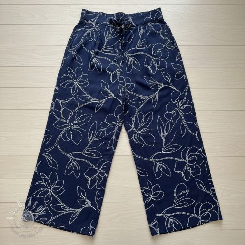 Viskóza s ľanom EMBROIDERY Flower Danielle navy