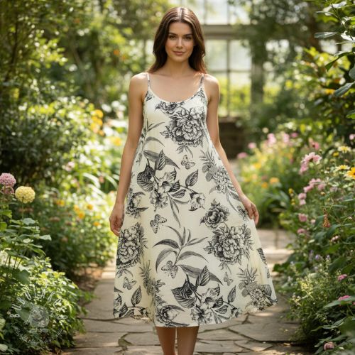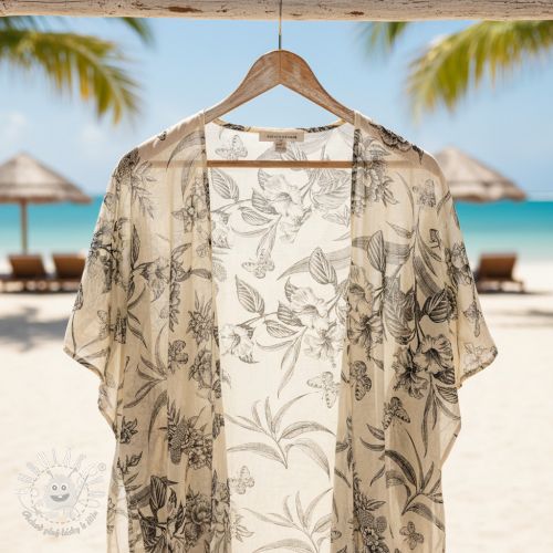 Viskóza s ľanom Floweria navy