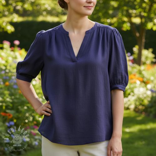 Viskóza s ľanom WASHED navy
