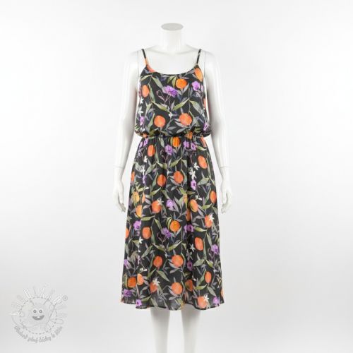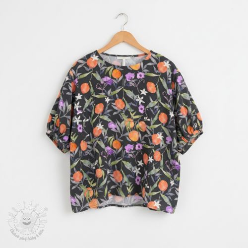 Viskóza SATIN Leaves and oranges digital print