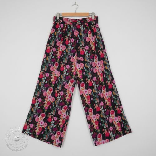 Viskóza SATIN Night flowers black digital print