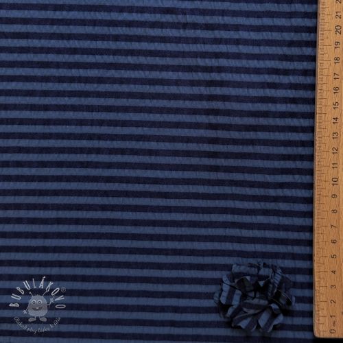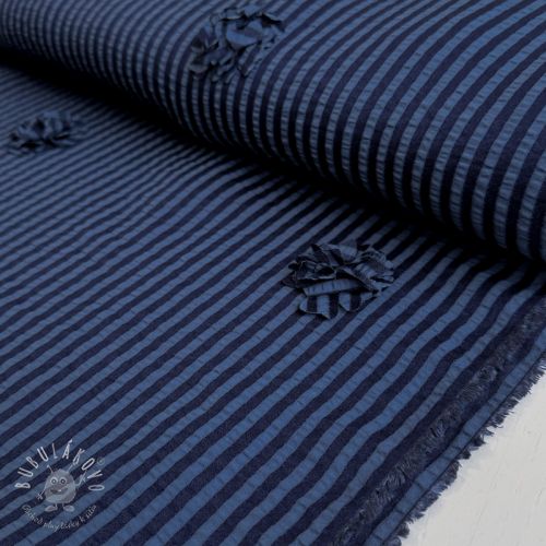 Viskóza YARN DYED Stripes and flowers navy